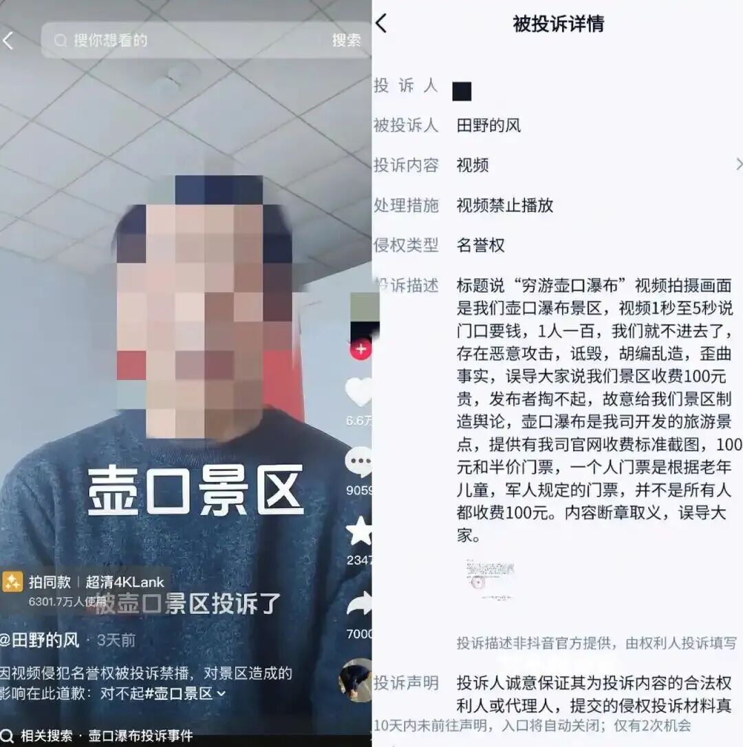 在景区外拍视频喊了句“门口要钱,一人100元”,竟被投诉侵犯名誉权?