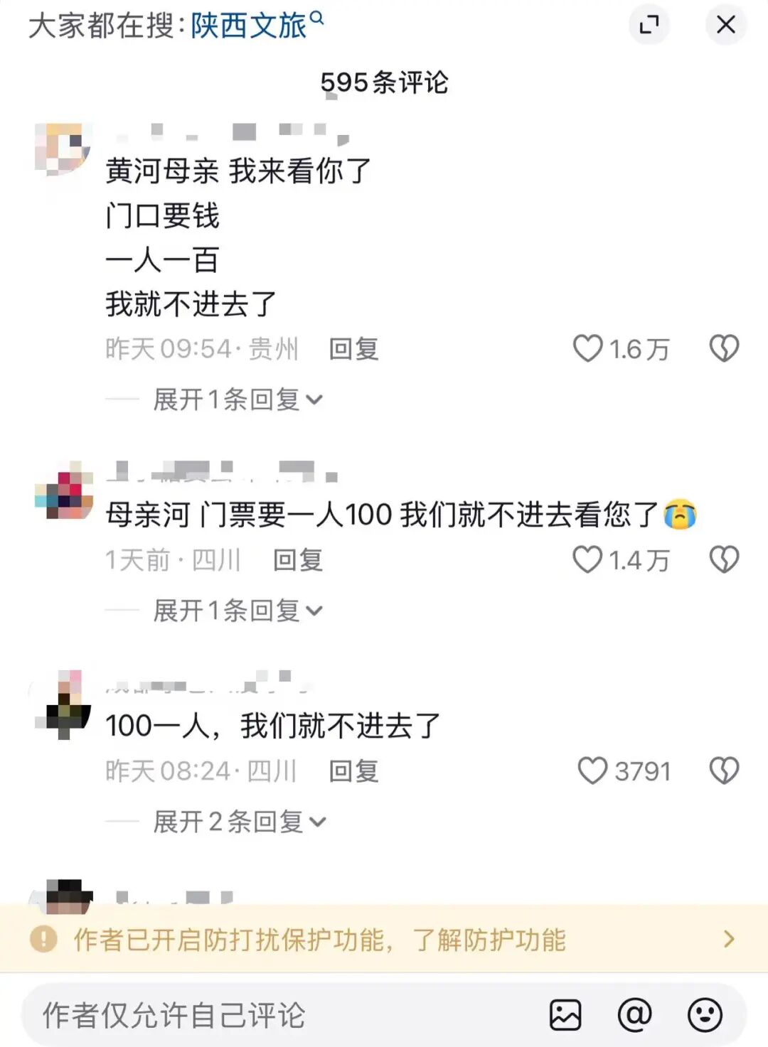 截至目前,山西黄河壶口瀑布景区、陕西黄河壶口瀑布景区的官方抖音账号,甚至山西文旅、陕西文旅的账号评论区,都涌入了大量质疑留言。